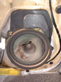 ここにもちょっと書きましたが、どうもカローラのオーディオの音が気にくわない。 アース不良でもノイズがのると言う話を聞いたので、まずステレオを純正にもどして、バッテリーの接続を確認、配線をテスターであたってみたりしてみましたが、特に問題は無さそうです。 バサバサと割れた音はやはりスピーカーが原因のようなので、この機会に交換してみることにしました。 |