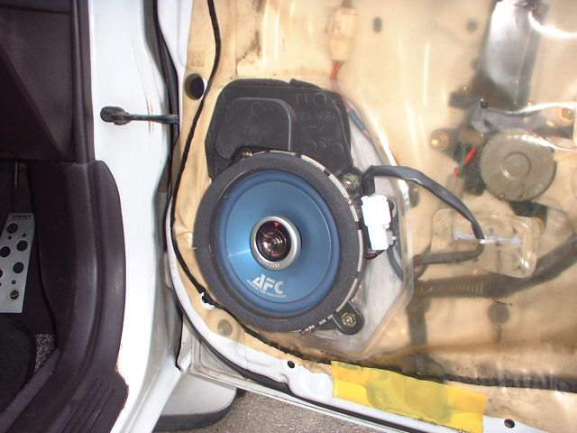 スピーカーのまわりにスポンジテープをはってセット完了です。あとはドアへ取り付けるだけ。 |