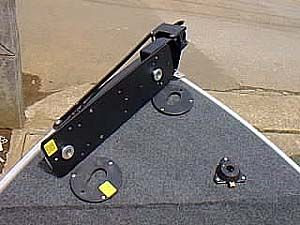 今までオレのエレキはかなり右よりに付いてたんで、それを修正して位置を決めたら、デッキに穴を開けてボルトナットでマウントのマウントを固定したらOKだ。