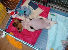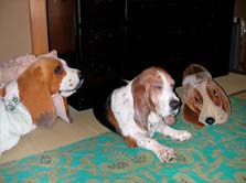 おうちでは二匹のバセのぬいぐるみと一緒にすごしています。