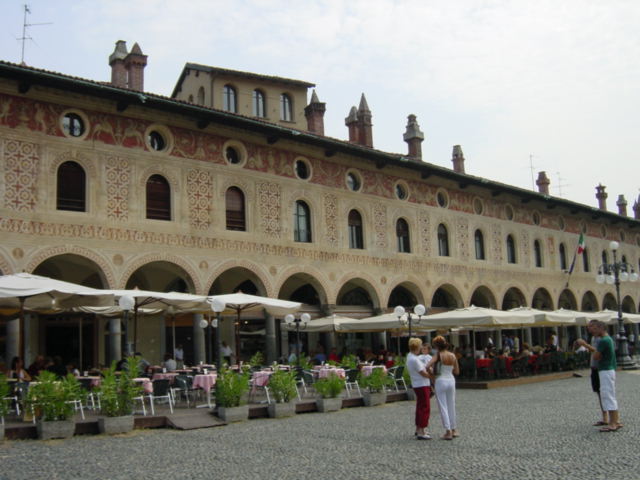 <アドバイス> ヴィジェーバノを訪れるのは、シエスタを避けた午前中か夕方が良いでしょう。また、「地球の歩き方」にはドゥオモは終日開いているかのように書いてありますが、12時30分頃に見たときには閉まっていました。また、街を一望できる塔や、博物館は土日(祝日も?)しか開いていないようなので、注意が必要です。(私が訪れたのも日曜日)
