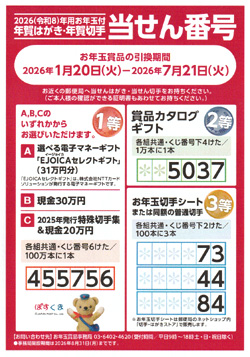 ●2026年(R8年) 年賀状お年玉当選番号一覧