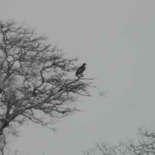 A hawk or eagle was perched on a tree near the top of Okinoshima.