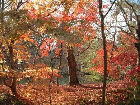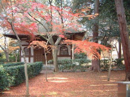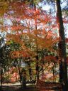| 最盛期はさぞかしすごかったであったろうと思われるあざやかな紅葉でした。重要文化財のみかえり阿弥陀如来(左後ろを振り向いておられる)が印象的でした。 |