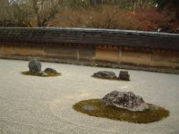 竜安寺は、大変な人でした。有名な石庭も写真をとったりじっくり見ることもできません。これは、人の影で一番の両端からそれぞれに撮ったものです。