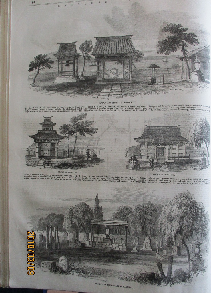 箱館の山門と鐘楼、寺院、墓地、街路と葬列 長崎における条約批准調印式、接待の様相 | |