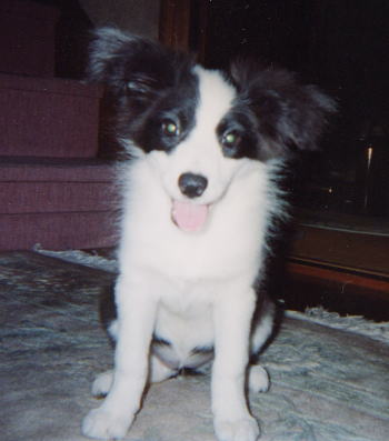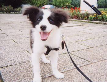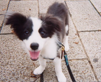 アヤさん家のルフィーちゃん。2000/3/2生まれ。この写真ははじめてのお散歩だって。パフパフの耳、フワフワの毛。キャワヨイ〜。たくさんお散歩いって、大きくなるんだヨ。