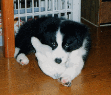 女の子にすると決めたころから、名前はみんなでずいぶん沢山考えました。フレア、ガイア、ルーラ、etc.etc.。任天堂の回し者みたいな名前が続出で、とうもピンと来ません。結局、犬が来る当日も名前は決まらないままに迎えることになり、次の日になってもまだ決まりません。