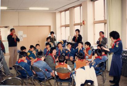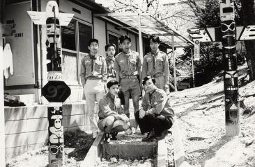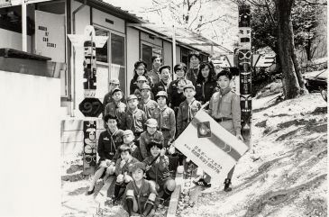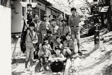 旧スカウトハウス、トーテンポール前で(1988年4月のものです。スカウトは何人か現役です。) |