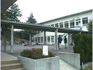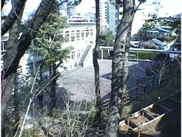 広場から2階へ上がる階段があります。