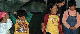 歌のおばさんの きれいな声に さそわれて 手振りをまじえて 人形劇の初めと 終わりに 歌います。