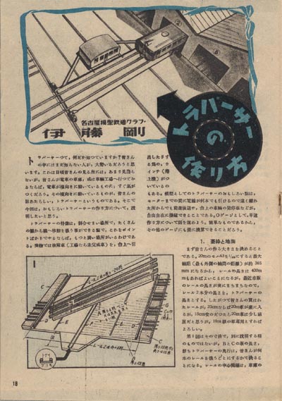 巻頭折り込み図面「スチュ−ドベーカー・チャンピオン号」。B5判本文36頁、定価45円。本文に伊藤剛氏の「トラバーサーの作り方」(下画像)を掲載。発行所は11月号と同じく少年文化社・ラジオと模型編集局。