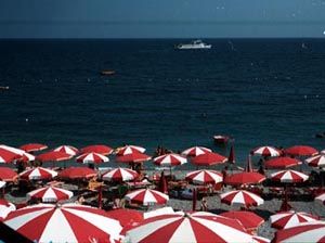 ただ、2人乗りなので非常に狭いのです。でも文句は言えません。が、古い車でどうやら自分で修理しているらしく、足下に配線が裸で見えているのを確認したときは、断ればよかったかなぁと不安になりましたが。 とっても人なつっこいお兄ちゃんで、いろいろと話しかけてくれるのですが、全く言葉が通じない。こうなれば万国共通語のボディランゲージ、なのですが、「日本から飛行機でやって来たのか」と“飛行機”を伝えるのに、ハンドルから両手を離しての身振り手振りだけはどうも・・・。道は断崖絶壁の急カーブだし、対向車線からはバスがやって来るし。日本はものすごく遠いところにあること、私たちは独身だ、ってことを何とか伝えられたところで、無事ポジターノ到着。 お兄ちゃんホントにありがとう。これで、ナポリに帰ることができます。お礼のバッチョ(キッス)でお別れ。 やれやれ、と思ったのも束の間。「ポジターノに行きたい」、と言ったのでご親切にポジターノの町に連れていってくれました。町は海岸沿い。バス停は山の上。バス停まで行くバスはないのか!!と、ぶつぶつ言いながら結局上まで歩くハメに。バスに乗り遅れると何にもならないので、脇目もふらず恐ろしく急な坂道を上ること20分。 バス停前のバールで、今度こそはちゃんと切符を手に入れ、冷た〜いジュースでも・・・といきたいところが、ここはイタリア。氷の入っていない生温いジュースをすすっているとバスが到着。疲れたけど、まぁ、いい思い出にはなりました。もう2度と体験したくないけどね。 さぁ、ナポリだ。夜行列車だ。明日はヴェネツィアだぁ。 1995.07