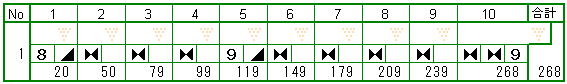 一見,第3ゲームの方がハイゲームでもあるしよさそうなのですが,実は第2ゲームでは,ピンが2本しか残っていません。