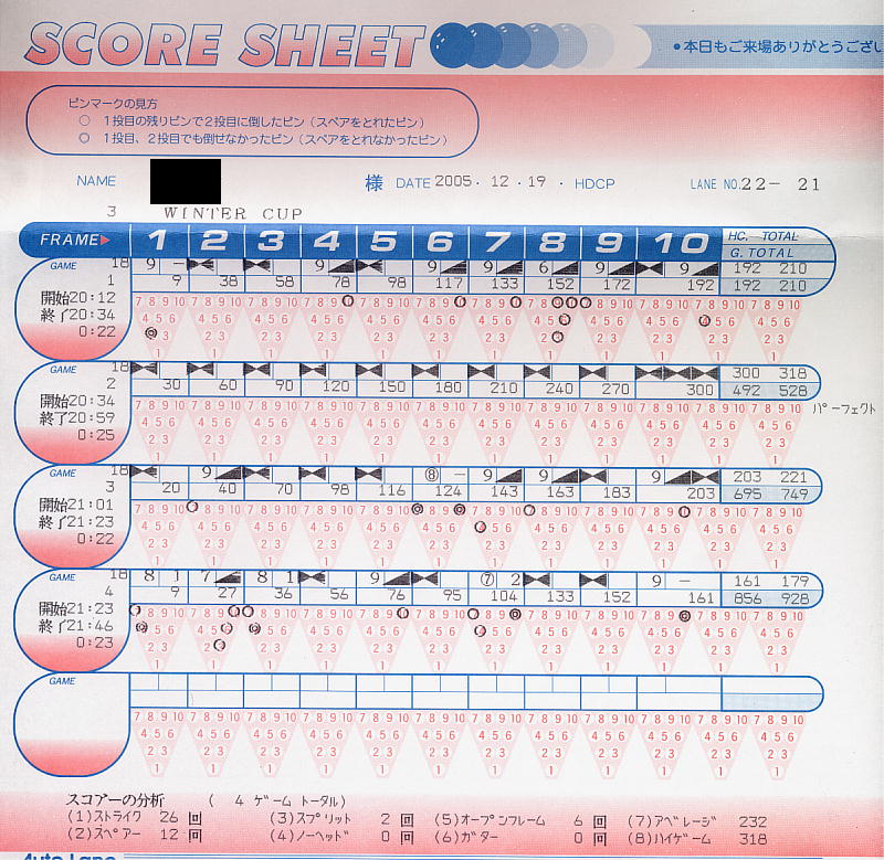 過去の会報を見ると前回の公認パーフェクトが4/19ですね・ちょうど8ヶ月後ということになります。しかも達成レーンも同じ21・22番レーン。