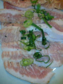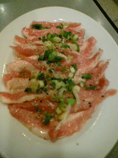 | そして21世紀の焼肉新メニューとして最近のしてきたのが,このトントロです。塩タンの代用品として豚タンが出回ってますが,味はイマイチ。それなら安くて美味いトントロのほうが良いです。 | 脂身の多い部位ですが,両面をこんがり焼いたカリカリ状態を食べると,ビールに合います。 | ちょっぴり変わったメニューを紹介します。塩タン先は,塩タンの切れ端で,少し硬いのですが味は同じです。しかも値段は格安なので,塩タンに手が出ないときは,お試しください。 |