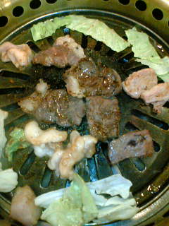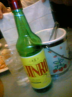 | おなかも随分ふくれてきたところで,網を代えてもらいましょう。そして焼きもののフィナーレは上カルビで決まりです。これぞ焼き肉という至高の味わいを堪能してください | 元祖韓国焼酎JINROです。こいつは焼き肉にもあいますよ。すぐボトルが空いてしまいますね。悪酔いしないのでオススメです。 | 焼き肉にはビールですが,まあビールの画像をのせてもしかたないので,韓国焼酎チャミスルをのせてみました。ジンロと同じメーカーですが,焼き肉にもよくあいます。スーパーでも安いのでおためしあれ。 |
