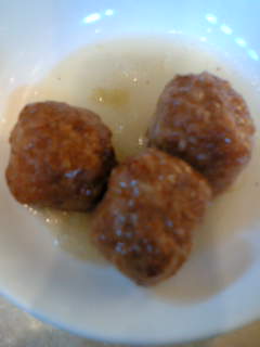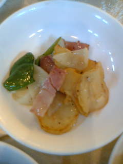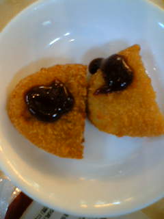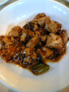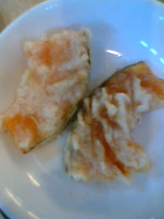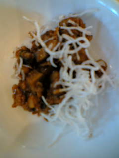 | 皿うどん風です。 | 肉みそです。麺とあわせれば・・・。 | 甘くて美味しいデザートです。 |