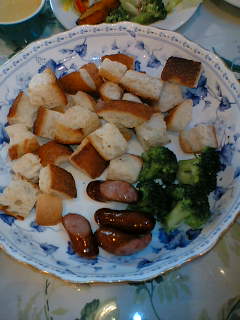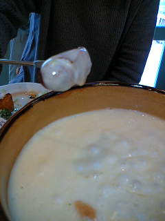 | カップスープ | 鍋にチーズが沢山 | これが2人前の具。 |