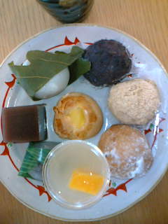 | 水ようかん・あんドーナッツ・おはぎ・ゼリー・柏餅など,まず7種! | 焼き餅・ごま団子・桜餅・細工饅頭など。ここまでで17種! | 洋なし大福・ゆべし?など。ここまでで21種! |