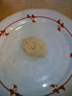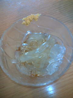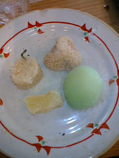 | オーダーによる熱々が食べられます。私が食べたのは1本。現在22種! | これもオーダー制のできたてです上がワサビ醤油・下が醤油。24種! | 自分でにゅるにゅる作ります。甘い物が続いて,さっぱり味が天国。25種! |