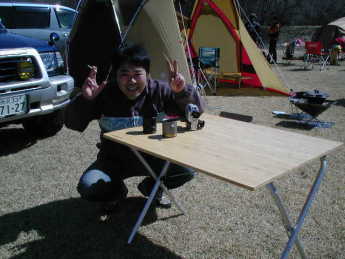 玄さんはなんと「ワンタッチテーブル竹天板」なるものをゲット、うらまやしい、