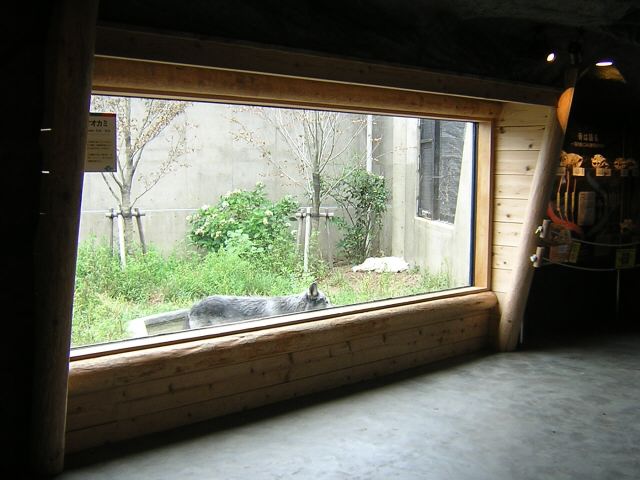 ![]() | 展望台1F部分はガラス越しの観察舎。奥側のユキヒョウ、反対側のトラとライオンも同様の構造になっています。 写真右奥は食肉目の頭骨展示。 |