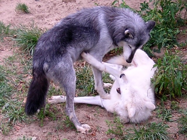 ![]() | ミッドナイト(♂・左)とサラ(♀・右)のコミュニケーション。 |