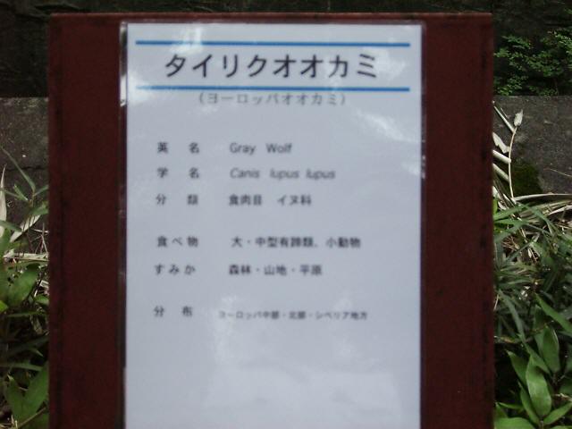 ![]() | 仮設っぽい表示板(ピンボケでごめんなさい) C. l. lupusはヨーロッパオオカミの学名 |