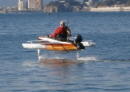 船体、スポンソンの設計、製作を当工房で担当し、自転車パーツ、アウトリガー、水中翼周りなどは依頼者が手配されました。(下の写真 参照)