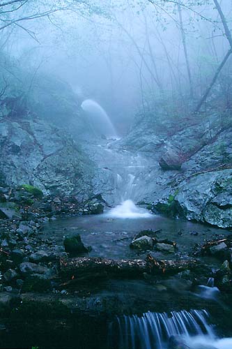 光や色の状態が流れるように変化して行く。夢中でレリーズスイッチを押し続け、はっと我に帰った時霧は幻のように消えていた。この間わずか10分もあったであろうか。