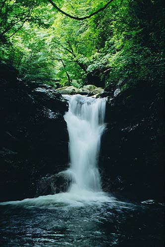 豊かな水、広い釜、豪快な瀑鳴。かすかに鳥の鳴く声が聞こえる滝前にただ一人降り立つ。そして私を熱烈歓迎する山蛭の蠢き。