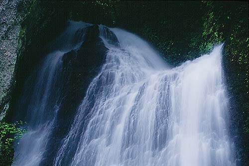 滝の前には部屋ほどもある岩塊が拉ぎ会い不思議な空間を形成している。ぽつぽつと降り出した雨は私が撮影を終えるのを待っていたかのように本降りとなった。