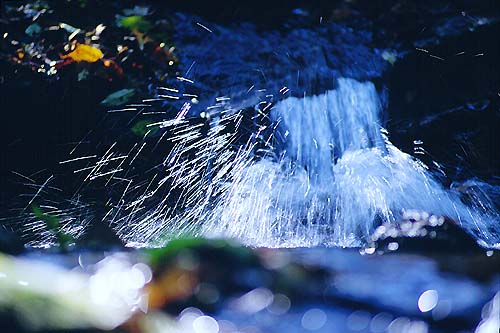 午後も遅い沢。弱い斜光で一瞬のきらめきを見せる。