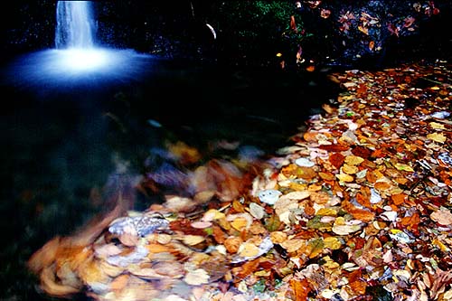 今日はこの滝まで降りて来たところで日が暮れてしまった。あと一息の距離だが、念のためにとヘッドランプを装着しながら「ああ、空しいね」と深溜息。