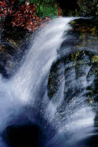 滝の沢の出合いに懸かるこの小さな滝、水量が多い時は三条、渇水期には一条になってこの沢の様子を教えてくれる。しかし一枚のベールになっているのはここへ通い出してから初めて見た姿だ。