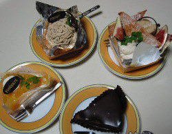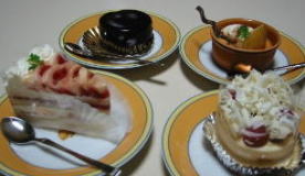 8月3日 暑い…。昨日、今日と、かなり暑いような…。けどこれが平年並み? 金曜日は午前中ゆっくり過ごして、午後から銀行へ行ったり、ちょっとだけ買い物したり…。暑くてあんまり何もする気になれないんだけど…。 昨日、土曜日は朝食の後から出かける準備をのろのろと始めて、お昼頃お出かけ。日本へ帰ってきてから始めて三宮方面へ。 あ〜久しぶりの神戸の町並み…。とりあえず、撮り貯めしていた写真のフィルム5本分を現像に出す。以前はCD-ROMへの書き込み2,3日はかかっていたのに翌日にはできるらしい。 すばらしいわ…。なんかいろいろ変わったなぁ〜しばらくいないうちに。で、その後、しばらく休学していた英会話スクールへ。月初めのせいか、土曜日なのにあんまり人もいなくて とっても静か。帰ってきてから家族以外の知り合いと話をするのはもしかしたら始めてかも…。で、とりあえず、復学の手続き? ってこともないけど、いない間にいろいろ変わったところの 説明をしてもらう。そうしている間にレッスンが始まる時間になって、たまたま受けれる授業があったので入れてもらう。久しぶりの英語だわ…。戻ってきてからもうすでに低下を始めてるし(汗)。 できるだけたくさん通いたいけど、金銭的には難しいしなぁ〜。うーまあ、それはおいといて。久しぶりに文法を直されるレッスンをして(今までは英語を習いに行ってたわけじゃないから 間違えてても誰かが直してくれるわけじゃなく、とにかくサバイバルイングリッシュ(?)だった…決して向こうにいる間に完璧な英語を話していたわけじゃない…念のため)ちょっと緊張した。 今日は朝から母と一緒に近くのモールへ買い物。んーカメラつき携帯…去年出た機種はずいぶん安くなってるなぁ…。ポイント使うと結構安く買えそうだけど…。悩むところだ…。 ほしいメーカーのはデザインがいまいち品がないんだよねぇ…。機能的にはいいんだけど…。新しいのが出るまで待つか…。あのポイントもこの秋で一部無効になっちゃうし…。今の間に 使っておきべきか…。新しいのが出てもすぐに買えるかどうかわからないし…。またまた入荷待ちとか、在庫切れ入荷未定…とかそういう状態が続くかもしれないしなぁ…。 まーもうちょっと悩んでみよう。で、やっと切れていた時計の電池を交換してもらう。3年保障付き…。前もこの店で入れてもらったのに半年で切れたぞ? けど保証書がどうしても 見つからなかったんだよね。とりあえず半年前に入れてもらったばかりなのに…とだけは言っておいたけど…。んで、交換をしてもらう間にフードコートでランチを食べたり買い物をしたり…。 意外と長い時間いたかも…。モールの中が涼しかったせいか、外に出るとかなり暑く感じた。なわけで、結構午後からは部屋でだらだら過ごしていたんだけど、昨日出したフィルムの現像が 午後にはできてくる予定だったので一念発起(?)して出かけることに…。電車に乗るとあちこちで浴衣姿の女の子たちが…。今日もどこかで花火か何かあるのかな? 今年は神戸の花火祭りを 見逃しちゃったからな…。この夏中にどこかの花火が見れるかな? とりあえず、写真を受け取りよく行っていたデパートへ。久しぶりのデパ地下でケーキを購入。 以前あったケーキ屋さんが一つなくなっていて新しいケーキ屋さんが入っていたのでそこのを購入…。本日のケーキ屋さんイングレック・プリュス 本日のケーキ…(手前左から時計回りに)オクマレ(チョコレートのケーキ)、クレーム・ダンジュ(生チーズケーキ)、フルーツ・ロールケーキ(フルーツをふんだんに使ったロールケーキ)、 ピエロ(ストロベリーとトマト、それに生クリームを使ったケーキ)。