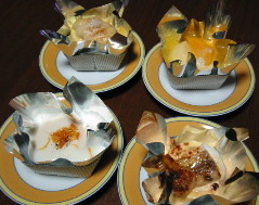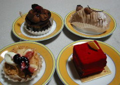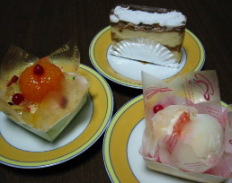 5月22日 お久しぶりでございます。今月はなんとも忙しい月でした。 いまさらですが、みなさまGWはいかがお過ごしでしたか? 私はほとんど予定も入らずのんびりと過ごしました。 カレンダーどおりの出勤でしたので長期のお休みを利用して旅行へ行く…といった事もできなかったので近くに出かけた程度ですね。 しかも連休の谷間の出勤日は会社に出てきている人の少なさに反比例してものすごく忙しかったのです。 5月13日にプロジェクトのセレブレーションパーティがあり、その準備に追われていたのです…。 当日に参加者に渡すプレゼントの作成とか、当日上映するビデオの字幕用の原稿作り(シナリオの英訳)だとか、店探しに、 参加者の名札作り、グループ分けにテーブルの番号作りなどなど本当に大変だった…。 当日もほとんど3時間たちっぱなしでパーティの進行の手伝いをしてご飯もほとんど食べられなかった…。はう。 まあ、参加してくれた人たちはそれなりに楽しんでくれたみたいなのでよかったけどね。 翌日の14日は英会話スクールのポットラックパーティがあったので、13日の夜疲れた体にムチ打って(?)下ごしらえ…。 今回もって行ったのはグリーンピースのコロッケ。とりあえずコロッケの形作りまでを仕上げたら夜中の12時半になってた…。 翌日いつもの土曜日よりも早く起きてコロッケをあげて、準備をしてスクールへ。その日はイベントのためいつもよりレッスンの時間が 早かったのと、神戸祭りがスクールの近くであり交通規制がかかっている可能性があったので早めに出たんだけど、 前年より交通規制の範囲が多くて本当にスクールへなかなかたどり着けなくて大変だった。今年は区切りのいい年だったらしくて 盛大にやってたらしくてスクールのすぐ前の道までダンスチームが大音量でパレードをしていってくれたため、授業にならないくらい うるさかったです…。先生が「これって営業妨害だわ。」と何度となくいっていたほど…。 で、授業の後喧騒を抜けて芝生のある公園へ。持ち寄った料理を食べて、軽いスポーツをして楽しみました。 今週はなんとなくだる〜い一週間になっちゃいました。私自身はそのセレブレーションパーティの準備の忙しさから開放されて ほっとしていたんだけど、USからお偉〜い方々ご一行が来られていたので、社内はばたばたした感じだったし…。はぁ。週末まで疲れたよう。 この週末はまたまた英語のレッスンへ。昨日も今日もがんばって受けに行ったよ。 今日はレッスンの前に以前お世話になったホストファミリーの下の女の子二人のバースディプレゼントをレッスンの前に買いました。 さて、そんな感じで…。 下のケーキの写真はGW期間中に開催されていた、洋菓子フェスタの写真です。上が展示品、下が今回参加していた洋菓子メーカーの ケーキたちです。おいかったです♪