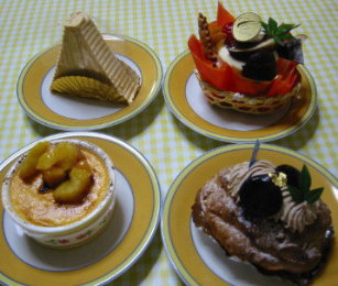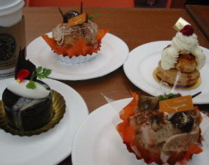11月26日 瞬く間に11月も終わりに近づいていました。びっくりです。 11月にあった出来事を超特急で振り返って見ます。 文化の日は町内会のバスツアーに参加しました。 まあ安いお金で参加できるツアーですのでそれほど期待もしていなかったのですが盛りだくさんで楽しめました。 塩作り体験をしたり、クルージングランチをしたり、花鳥園へ行ってみたり…と。 ただ盛りだくさん過ぎてとっても慌しかったんですけどね…。 月初めに会社近くで秋の洋菓子フェアがありました。もちろん今回も美味しいケーキを目指していきました。 限定品のケーキをいくつか食べましたよ。 甥っ子のバイオリンの発表会があったのもその頃です。 がんばってましたね。 中旬には色々とことが起きまして、試験を受けてみたり読み慣れない書類を読んでみたり…と 少し慌しかったですね〜。せっかく会社でマッサージをしてもらったのにその日の夕方にはまたまた 肩こりがぶり返していました。 あ〜週一回くらいのペースでマッサージに行きたいですね。 今年はすでに年賀状つくりをはじめました。 一応裏面は1パターンは出来上がったのであとはプリントするだけですねー。 あと少しアレンジを加えてパターン2を作ればOKですね…。 あ、でも表書きも印刷しなきゃね…メッセージも書かないといけないのでした…。 となるとやはり早くやり始めていても出すのはぎりぎりかなぁ〜? なんのために早く作り始めたのやら…笑。 とこんな感じで超特急で振り返ったため何のことやら読んでいる人にはわからないかもしれませんが…。 そんな一月を過ごしました。(どんな一月だ…?) 秋の洋菓子フェアでのケーキたち…