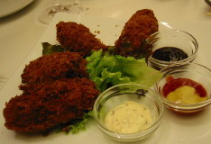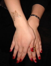 11月11日 はあ、11月ですよ…。つい最近まで暑いと思っていたのに秋も本番。冬に向かって行っている感じです。 すっかりじゃ〜なるもおさぼりモードになっていますが…10月はなにかと忙しかったのです。 自分でも10月にじゃ〜なるを書いていたと信じていたんですけれどね〜。 9月の終わりから新しい職場で働き始めました。10月いっぱいは引継ぎをしてもらって色々と教えてもらったんですが 前任者も結構キャリアが長かったらしくて一月では覚えきれませんでした。 まあ、いまは独りになって解らないことがあるたびにあれやこれやと調べまわっています。 仕事もまあ忙しいのですが、7月頃からはじめた新たな勉強があり、9月の終わりからまとまったコースをうけなければ ならず、そのための時間作りも結構大変だったりします。課題が出されるのでそれもしないといけないし 自分で始めたこととは言え少し疲れています。 10月のイベントといえばハロウィンパーティでしたが、今年は時間もアイデアもなくてあまり準備ができませんでした。 今年はとりあえずテーマをちょうちょって決めて蝶のモチーフのついたヘアアクセサリーやらシールのタトゥーやらを あちこちにつけて参加しました。テーマが良くわからないとか自分を汚していないとか今回の評価はいまいちでしたが まあそんなに毎年毎年いいアイデアが浮かぶこともないから許してもらいましょう。それに毎年恒例繁華街を仮装した状態で 練り歩く…ということもちゃんとやりましたし。あと、それに今年は「何年か前の使いまわし…?」というタイプの コスチュームが多く見られましたし…。ちょっと手を抜いたっていいよね…。今回の会場は食事がわりとよかったな…。 さて、ここのところ何かと寂しいお知らせとか悲しいお知らせが舞い込んできます。 秋だからかな…? なんとなくですがあまりよろしくない類のニュースは何故か秋にやってくるような気がします。 さて、なんとなく今日はすでにお疲れモードなので…簡単に写真を載せて終えたいと思います。 一応ネールも、指輪&タトゥー(顔にもつけてる…)もちょうちょ。食事の写真はピンボケ…フラッシュ使えなかったから仕方ないのさ。