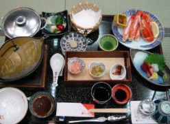 旅行の時の写真です。 上段/昼食:カニに一口ステーキにお鍋温かい天麩羅、締めはマロンのババロアでした。 中段/昼食を頂いた温泉宿の中庭。 下段/ちくわ作り…焼いてます、すり身から練り上げて作りました。それとお土産に買ったカニ。
