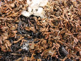 ミミズ床の茶色の部分は紅茶(祁門紅茶)の茶殻で、黒色はミミズの糞です。