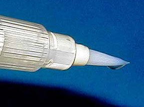 ・筆先をはずし、柄の部分に、スポイトの要領で水を入れます。(8分目程度)