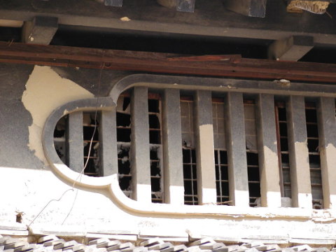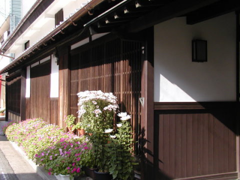 2階部分は、時代がかった格子窓。
