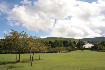 今日は、9月の空の下に、なだらかな緑の山が広がっていた。