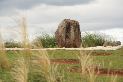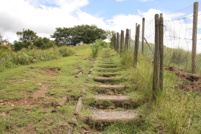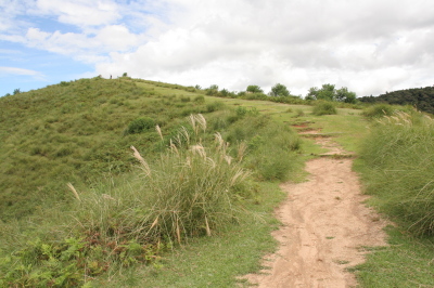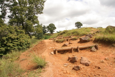 ごろごろとした赤土で足場が悪い。えっこら、えっこら。