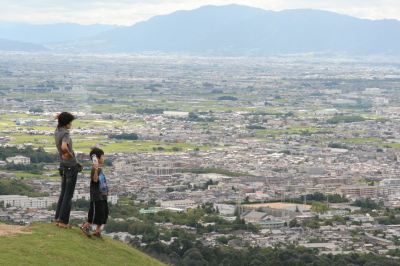 「30分くらいで登れますよ。今、見えてる山のむこうにふたつ山があります。」