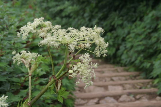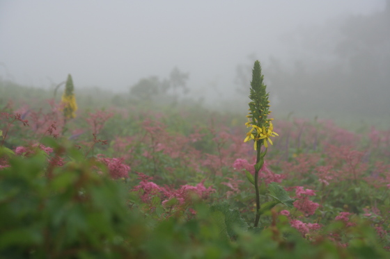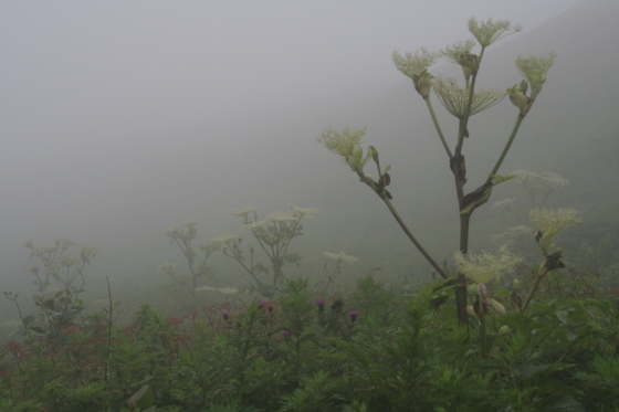 この時期はシシウドの白い花が満開で、草原にすっくと立つ姿が印象的でした。
