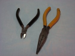 ニッパーとラジオペンチ ニッパーはプラモデル用ではダメです。 エレ・ボの骨格のワイヤーが硬いので、 必ず工業用のごついヤツを使って下さい。 |