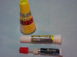 接着剤各種 金属とゴムが接着出来るモノが必要です。 プラスチック用アロンアルファを使いました。 |